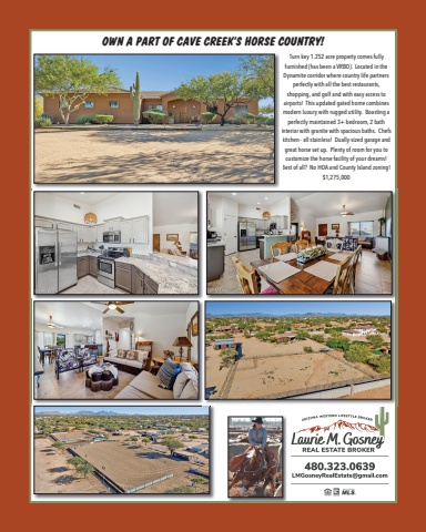 OWN A PART OF CAVE CREEK%u2019S HORSE COUNTRY! Turn key 1.252 acre property comes fully furnished (has been a VRBO). Located in the Dynamite corridor where country life partnersperfectly with all the best restaurants, shopping, and golf and with easy access to airports! This updated gated home combinesmodern luxury with rugged utility. Boasting aperfectly maintained 3+ bedroom, 2 bath interior with granite with spacious baths. Chefskitchen - all stainless! Dually-sized garage andgreat horse set up. Plenty of room for you tocustomize the horse facility of your dreams!Best of all? No HOA and County Island zoning!$1,275,000