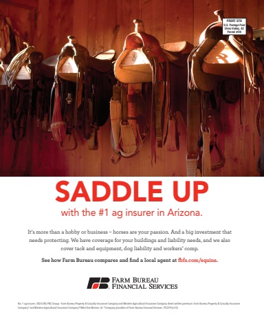 It%u2019s more than a hobby or business %u2013 horses are your passion. And a big investment that needs protecting. We have coverage for your buildings and liability needs, and we also cover tack and equipment, dog liability and workers%u2019 comp.See how Farm Bureau compares and find a local agent at fbfs.com/equine.with the #1 ag insurer in Arizona.SADDLE UPNo. 1 ag insurer; 2024 SNL P&C Group - Farm Bureau Property & Casualty Insurance Company and Western Agricultural Insurance Company direct written premium. Farm Bureau Property & Casualty Insurance Company* and Western Agricultural Insurance Company*/West Des Moines, IA. *Company providers of Farm Bureau Financial Services. PC229 (6-25)PRSRT STDU.S. Postage PaidChino Valley, AZPermit #20